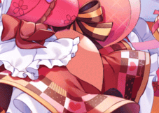 結構散りばめられてますよね。ハートとかチョコとか。指のポーズも指ハートなのかな? 元がツインテールなのが三つ編みになっているのもいいアレンジです。こうやってみると傘も含めて大正浪漫っぽさがありますよね。でもそれでいて古臭さがない。